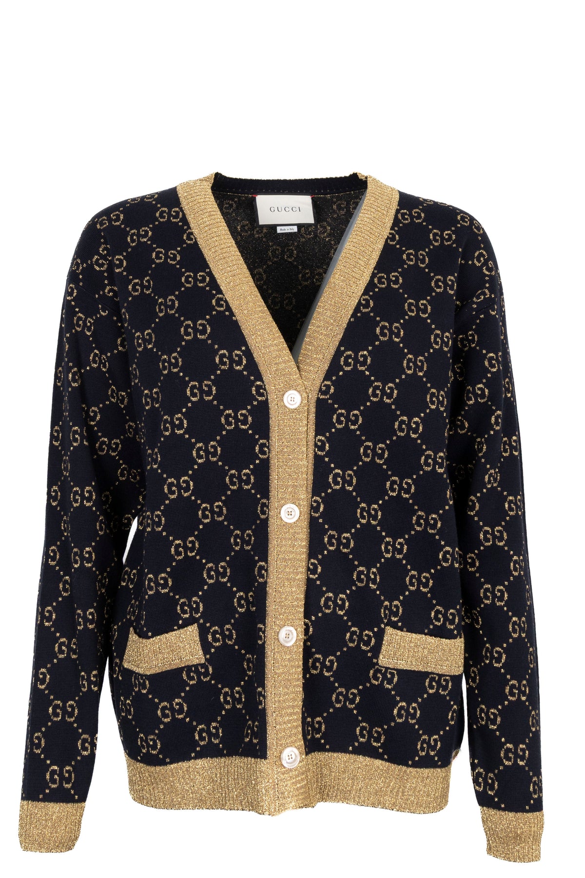 Gilet en maille GUCCI GG Lurex bleu marine et or