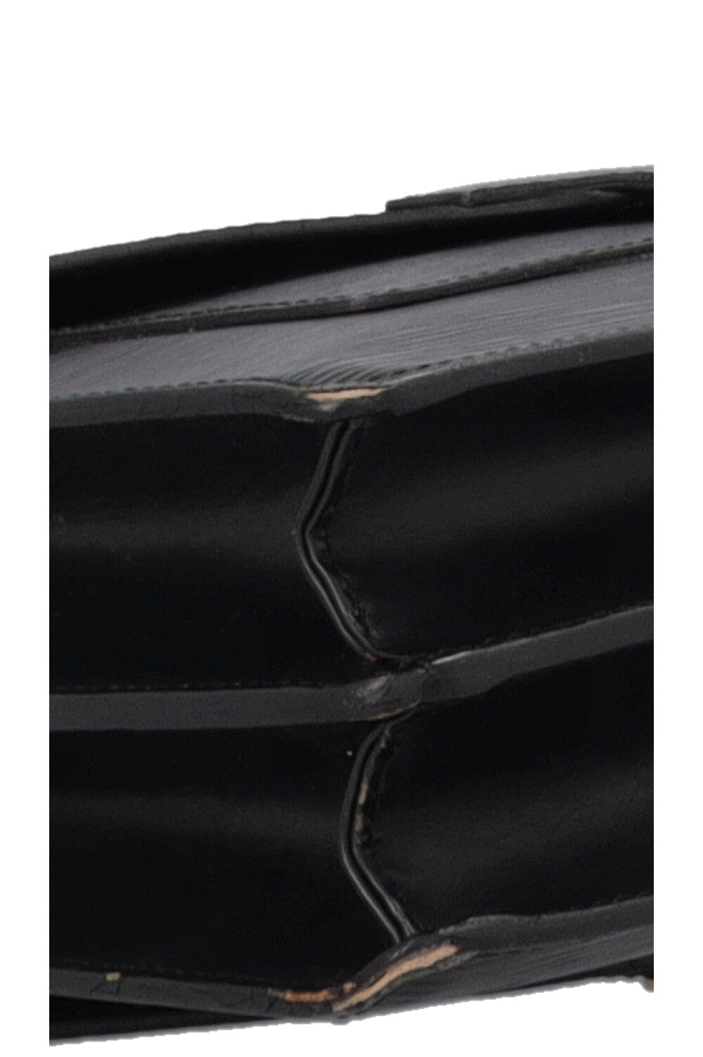 Détails: Le cuir commence à se craqueler et à s’écailler légèrement à certains endroits, notamment dans la poche latérale intérieure du sac