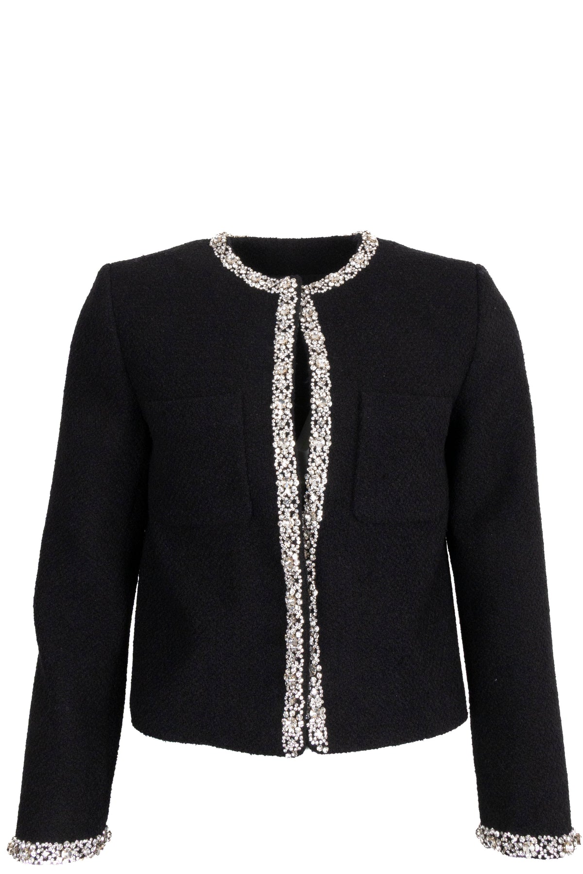 Veste en tweed noire à bordures en strass