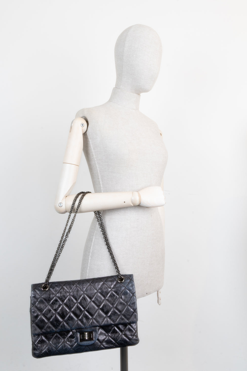 Sac à rabat CHANEL 2.55 Maxi en cuir de veau vieilli
