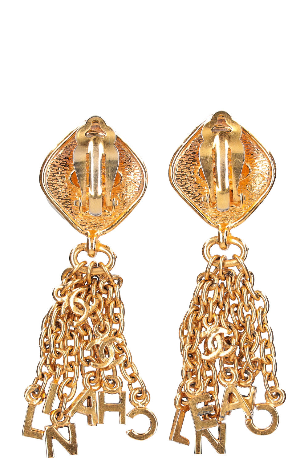 CHANEL Boucles d'Oreilles Pendantes Logo Doré