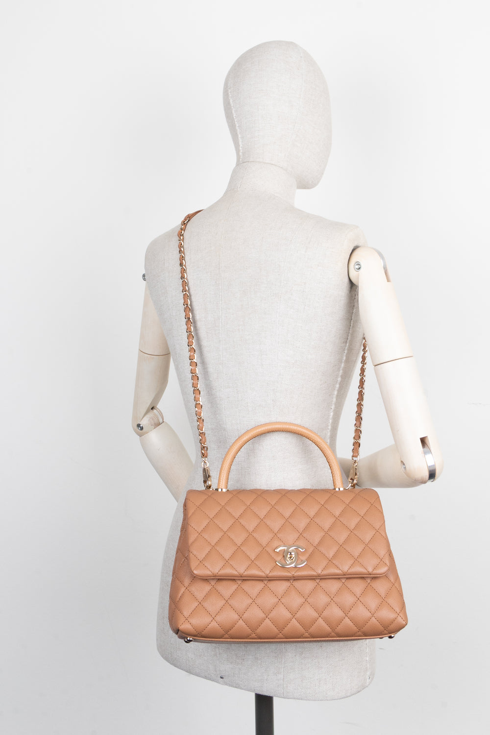 Avec ses lignes épurées, sa poignée supérieure, sa bandoulière amovible et son aménagement intérieur sophistiqué, il allie fonctionnalité et élégance. Depuis son lancement, le Coco Handle est devenu l'un des trésors les plus convoités de Chanel, transposant les codes classiques de la maison dans un sac moderne et quotidien.