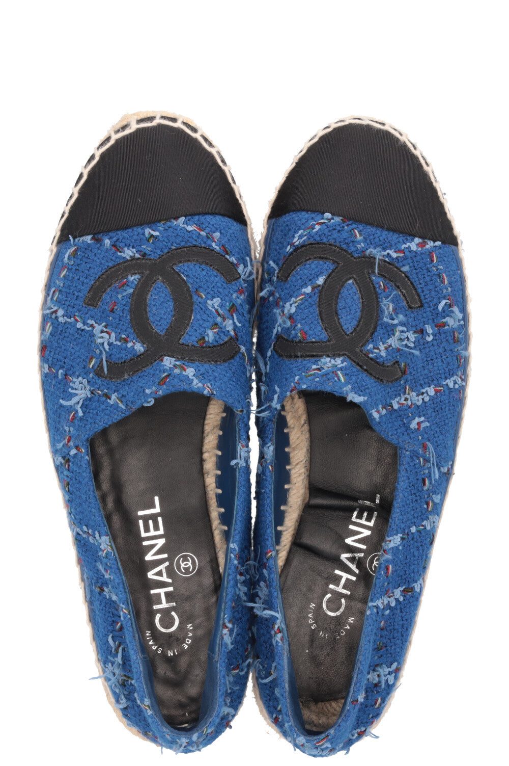 Chic intemporel pour l'été : les espadrilles Chanel Tweed CC bleues et noires allient le tweed classique au logo CC emblématique. Décontractées, élégantes et polyvalentes, elles sont parfaites pour des looks stylés du matin au soir.