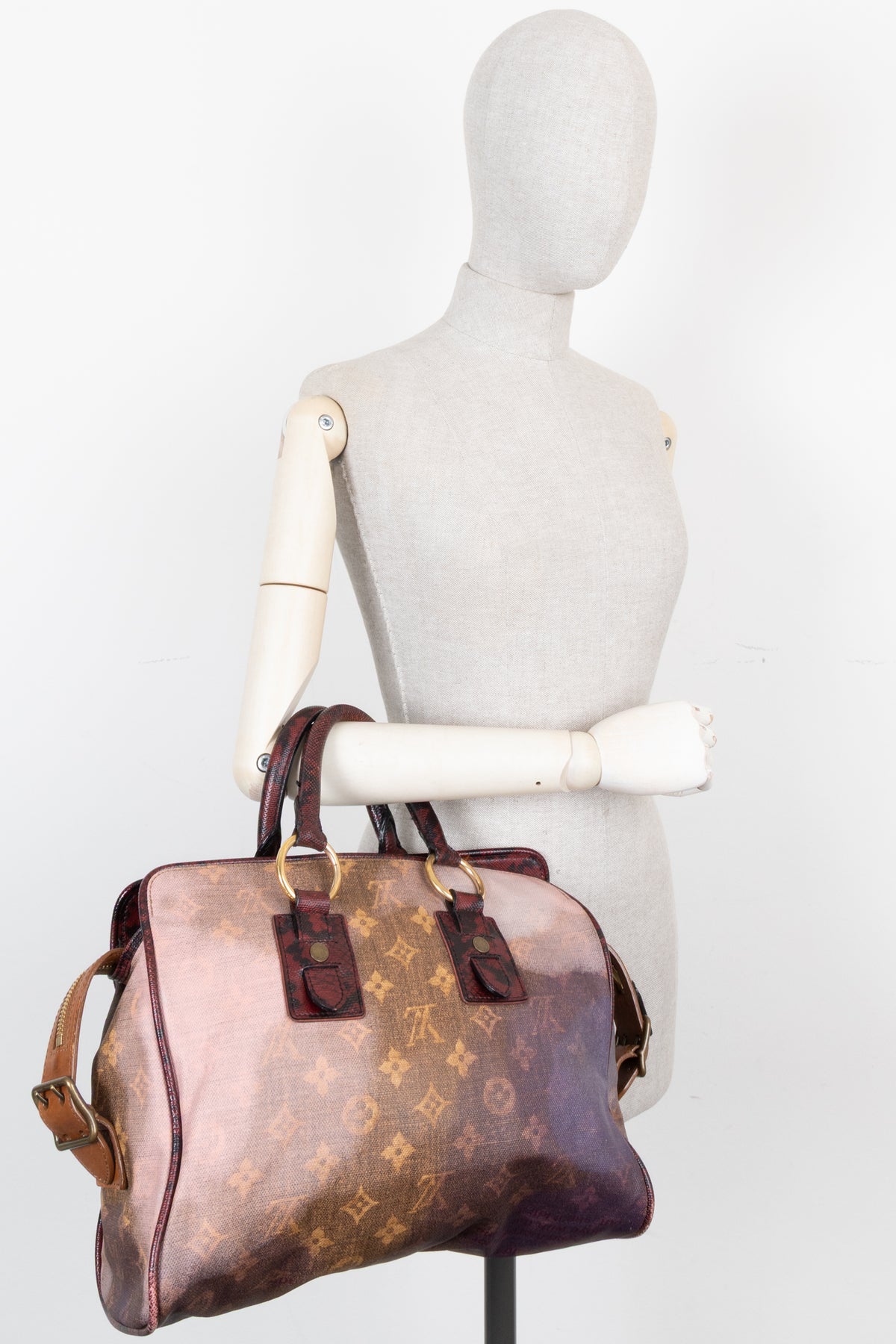 Le sac Louis Vuitton Richard Prince Graduate Jokes a été créé en 2008 dans le cadre d'une collaboration entre la Maison Louis Vuitton et l'artiste américain Richard Prince, sous la direction artistique de Marc Jacobs. La collection, intitulée « Jokes », associe la toile Monogram classique à des fragments de texte imprimés avec ironie, en référence à la célèbre série « Jokes » de Prince. Ce modèle présente une forme cabas classique, rehaussée de détails en python bordeaux foncé sur les anses et les finitions, créant un contraste saisissant de matières et de couleurs. Il a été confectionné en France, dans les ateliers Louis Vuitton, où le savoir-faire traditionnel rencontre le design conceptuel.