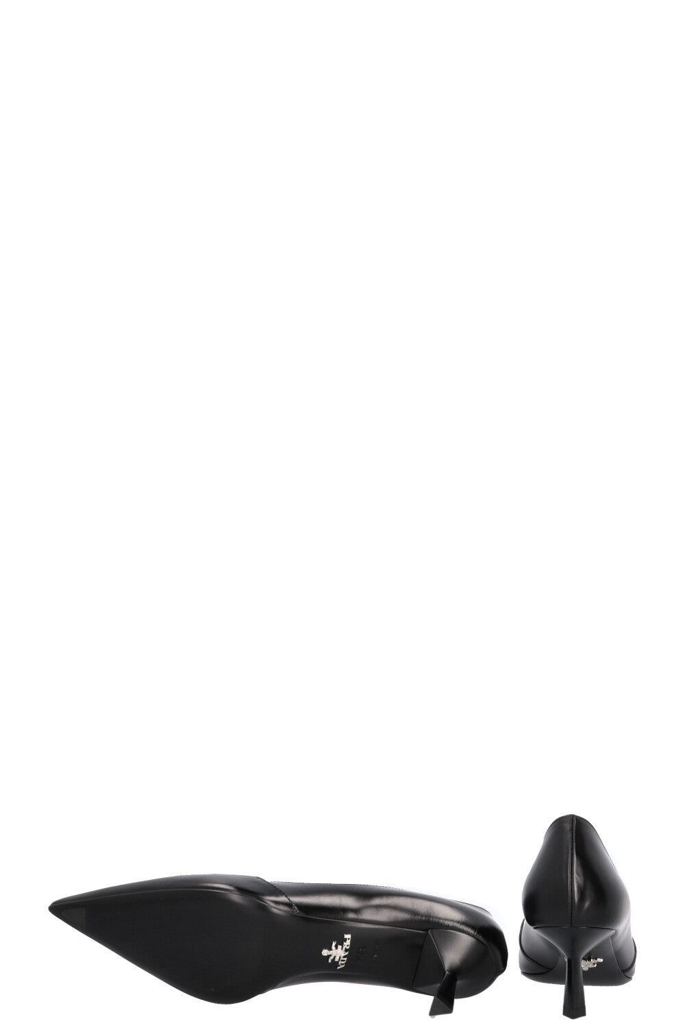 Une déclaration de style : les escarpins Prada Logo Geometric, d'un noir classique, séduisent par leur forme sculpturale et leur logo discret. Un accroche-regard moderne pour des looks élégants comme minimalistes.