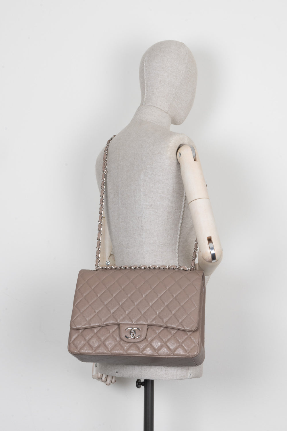 CHANEL Maxi Double Flap Bag Caviar Taupe
