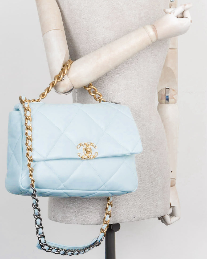 Im März 2019 wurde die Chanel 19 bei der besonders bewegenden Herbst/Winter-Laufsteg Show von Chanel vorgestellt. Sie war Teil der letzten Kollektion von Kreativdirektor Karl Lagerfeld für Chanel, die nur einen Monat nach seinem Tod im Februar 2019 vorgestellt wurde. Karl hatte die Tasche in Zusammenarbeit mit Virginie Viard entworfen, seiner langjährigen "rechten Hand", die nach seinem Tod rasch zur kreativen Nachfolgerin ernannt wurde.