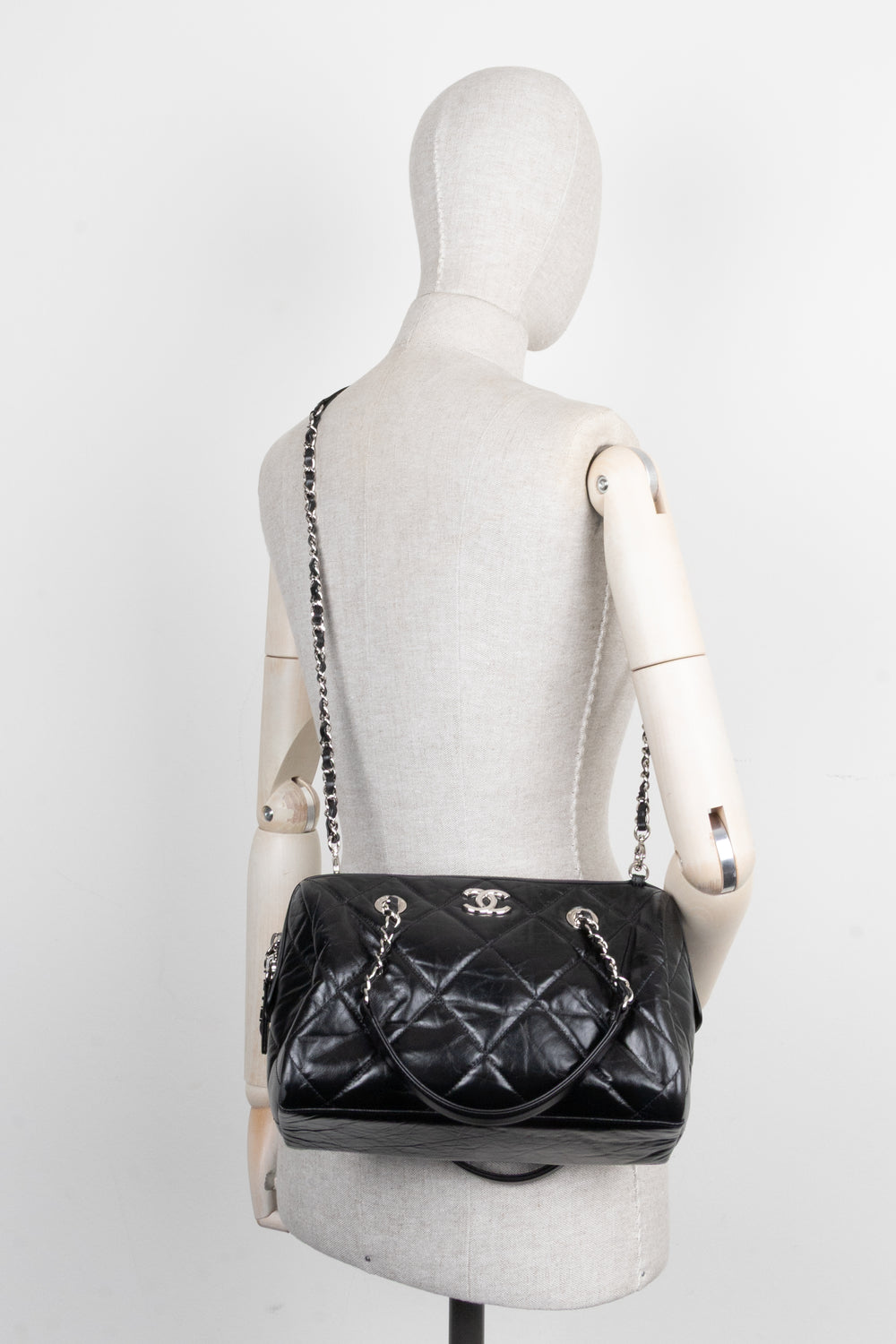 CHANEL Quilted Leather CC Small Bowling Bag Black